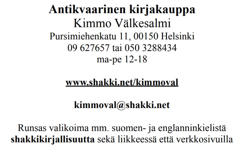 Osanottomaksu 100,00 € / joukkue on suoritettava samalla Lappeenrannan Shakkikerho ry:n tilille FI51 5620 0920 3437 29. Viestikenttään joukkueen nimi.